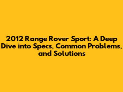 2012 Range Rover Sport: Specs, Problems & Solutions