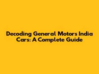 Decoding General Motors India Cars: A Complete Guide