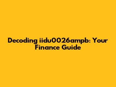 Decoding Iidu0026ampb: Your Finance Guide