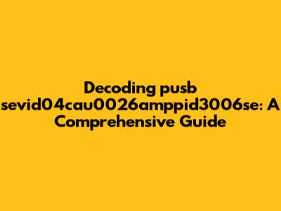Decoding Pusb Sevid04cau0026amppid3006se: A Comprehensive Guide