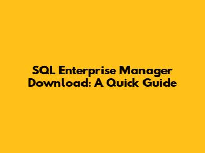 Download SQL Enterprise Manager: A Quick Guide