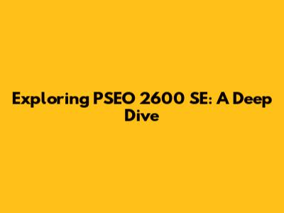 Exploring PSEO 2600 SE: A Deep Dive
