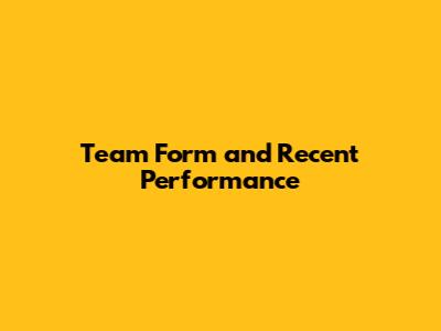 Team Form and Recent Performance
