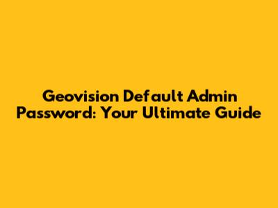 Geovision Default Admin Password: A Comprehensive Guide