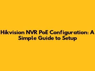 Hikvision NVR PoE Setup: A Simple Guide