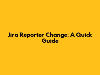 Jira Reporter Change: A Quick Guide