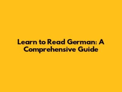Learn To Read German: A Comprehensive Guide
