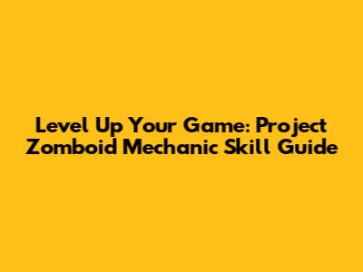 Level Up Your Game: Project Zomboid Mechanic Skill Guide