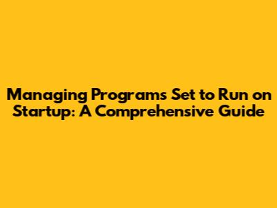 Manage Startup Programs: A Comprehensive Guide