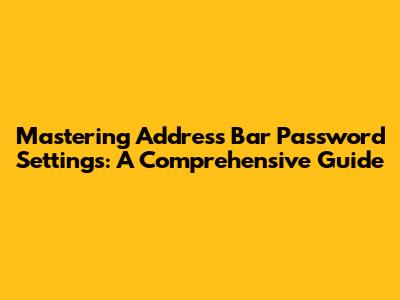 Mastering Address Bar Password Settings