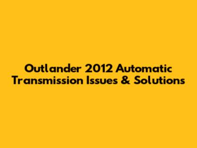 Outlander 2012 Automatic Transmission Issues & Solutions