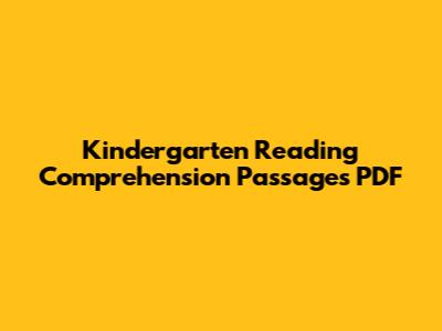 Reading Comprehension Passages PDF For Kindergarten