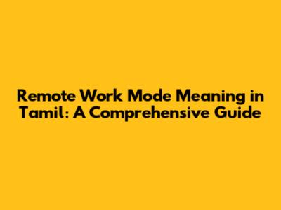 Remote Work In Tamil: A Comprehensive Guide