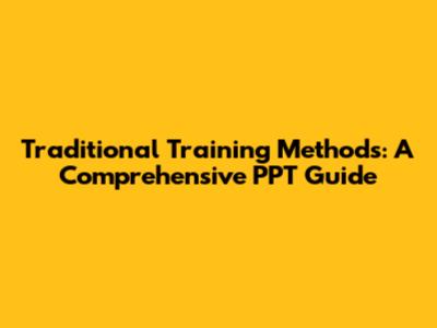 Traditional Training Methods: PPT Guide
