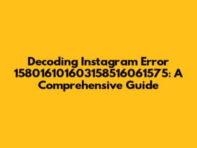Hey Instagram enthusiasts! Ever stumbled upon the cryptic error message 158016101603158516061575? Don't worry, you're not alone! This often-seen error can be a real headache, but understanding what it means and how to troubleshoot it can save you a lot of frustration. This guide will break down everything you need to know about this Instagram error, helping you get back to your scrolling, liking, and posting in no time. We'll explore the possible causes, and provide you with actionable solutions to get you back on track. Let's dive in and demystify this common Instagram issue!