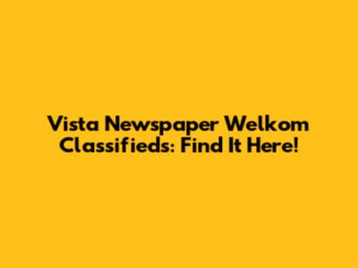 Vista Newspaper Welkom Classifieds: Find It Here!